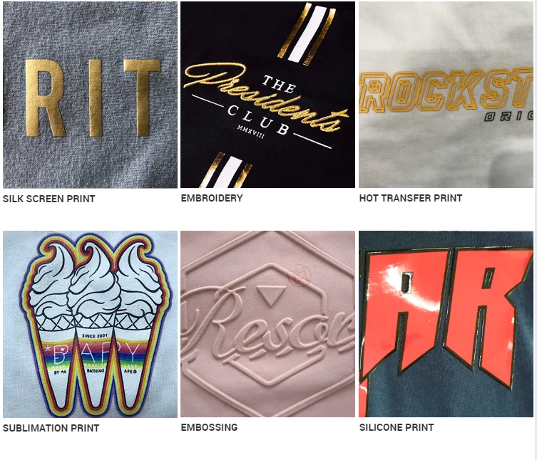 Support print (screen printed, stamped printed, sublimated and embroidered as well as tailored)