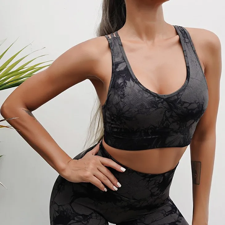 gym fitness sets high waist yoga sets fitness women bra & brief sets die dye sportswear for women