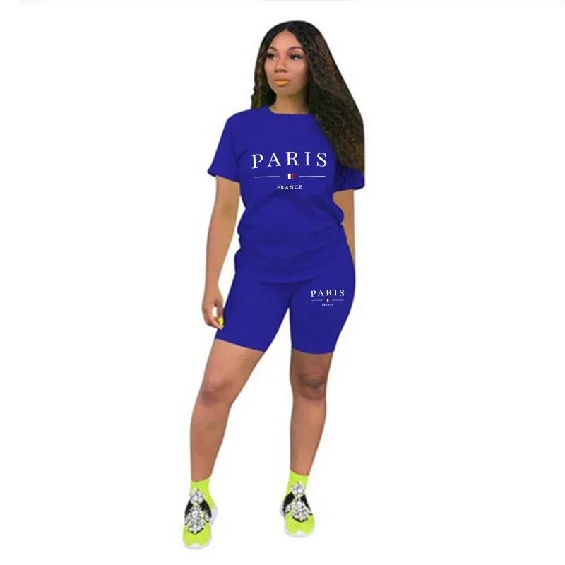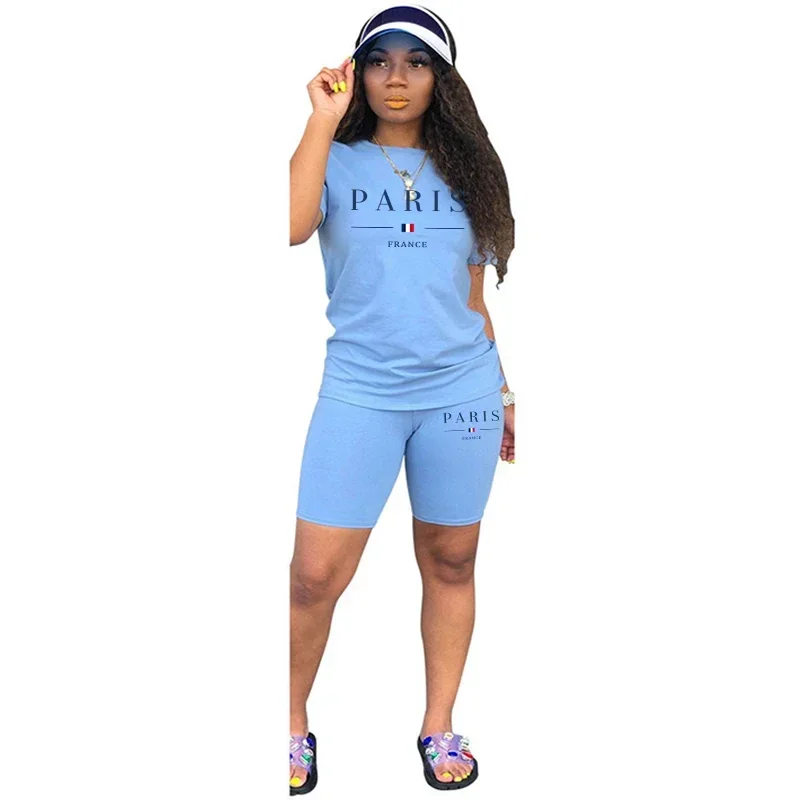 Women’s Summer Sports Wear 2pcs Set Paris Printed T-shirts and Shorts High Quality Ladies Home Outdoor Comfortable Outfits